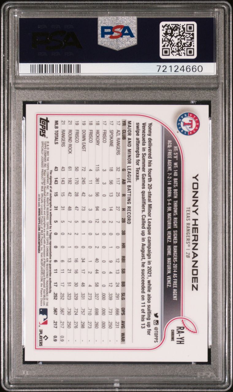 2022 Topps Chrome Yonny Hernandez Auto #RAYH - PSA 9